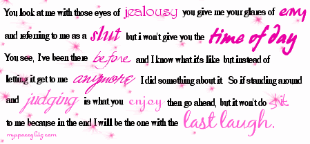 *PEACE BE UPON YOU* GoooooooD Morning EVERYONE!!!! HAHAHAHAHHAHAHAHAHH!!!! I'm so happy right now.... Last night after blogging, I actually went ot my bedroom to sleep, but as usual, i've gotta read sumthing before going to bed. While reading and tuning in to Perfect 10 via my mobile, the DJ on duty was actually asking listeners to sent in a sms about why you like about Rihanna and you could stand a chance to win tixs to her showcase..! And I actually did sent. This was purely out of boredom that I did this... I didn't like her that much thou', but i kindda like her unique Bahamian voice and easy listening songs that she sang... AND.. in a lapse of 2 minutes after sending the sms, I've got a call from DJ Shan Wee and say that I've WON the TICKETS SHOWCASE!!!!!!!! SHOCKED, SPEECHLESS & I TREMBLE ON MY WORDS when he called me!!! Hahahahah!! I've WON MYSELF 4 TICKETS!! I basically telling the whole house about it!! Mummy had to tell me to lower down my voice coz it's already 12.45AM... HAHAHAHHAHAH!!!!! And I've told my couzzie Alin.. She was more excited than me! She even asked me, "Couz, so u're calling me at this hour to invite me along with you issit?!"... Steady jer eh! But yeah~ I'm definately gonna bring her!! Wanted to call besties, but I guess she must be asleep, so I only broke the news this morning on the way to werk... She too was eager... She was saying that i've gotta bring her! Even if her hubby mind, she'll ensure that he won't mind at all! Hahahaha! That's typical Mira if u wanna noe!! When she starts her nonsense, she won't stop!!! Hahahahah!! It's definately gonna be my gals night out! Me, couzzie (Alin), besties (Myra) & ma good galfren (Lynn)!!! So, the showcase is next Wednesday @ St. James Power Station...!! Now..... The 'GOOD GIRLS GONE BAD".... Excited to catch her, and also excited coz it's been awile since I last did this with besties and she stepping into a club with me, it has been ages since... So RIHANNA... Here we come....... We'll GO BAD with you!!! ~Lolz~ ![]() Alrighty.... I'm making a come back soon... Coz right now... I've gotta do my werk...!!! Just to spice things up.. I've got these quote to share with you viewers whom is always contemplating on other people's life and not of your own! To them, please get some life! We ain't angels ourselves, we ain't perfect either, but the least I or WE could do is to change the way we wrote our life's journey! Before talking and giving comments, please do some self-reflection first aittes! Just sit down and ponder, why are u not aprreciated by other souls?! Why are you always being diss-eD by frens?! Why are you not important in sumone's life?! Is there something that's hindering you?! Is there sumthing just not RIGHT with you?! Are you really WORTH & DESERVE much kindness from others?! ![]() AGAIN, PLEASE READ MY SENTENCE CAREFULLY & LEMME REPEAT THIS:- I AIN'T an ANGEL myself! I AIN'T near to ANY PERFECTION even! I'm a normal typical girl who DOES mistakes too! I'm CONSTANTLY LEARNING from my past MISTAKES and SUCCESS! I DO HAVE A BESTFREIND! I DO HAVE BUDDIES & ACCQUAINTANCES! I AM BLESSED WITH GOOD WISDOM! I AM BLESSSED WITH SO MUCH LOVE FROM FAMILY & FRENS! I AM OBSESSED with little things in Life! I AM a GREAT worrier! I STILL UPHOLD my FAITH & RELIGION thou at timeS I may neglect! I DON'T BITCH unLess she's a BITCH! I Do hurt PEOPLE at times Either INTENTIONALLY OR UNINTENTIONALLY! I DON'T go around telling taleS! I DUN PRETEND TO BE A SAINT! I REALISED THAT I'VE MADE HUGE GRAVE SINS! I'M DEFINATELY NOT A TWO-HEADED MORONS! I DO BELIEVE IN KARMA! I DON'T LIVE TO PLEASE YOU! I RATHER SING IT OUT LOUD THEN SHOUT! I DON'T BELIEVE GOING AROUNDN TELLING OTHERS HOW WONDERFUL I AM AS A PERSON! I DO BELIEVE IN RETRIBUTION! AND DEFINATELY, AGAIN, I'M JUST BEING MYSELF HERE! LOVE ME OR HATE ME, I dun givva S***! Coz for all I know, I'm the authour to the story of my LIFE & I'll illustrate those pictures myself!! I dun need anyone to be the EDITOR of my journey coz at the end of the day, it's to HIM i'll return to, so let HIM & MY PARENTS do the honour of editting them! Thank You! And to those whom LOVES me for who I really am, I LOVE YOU EVEN MORE! And for those who's not pleased with my appreance in this world, MAY GOD BLESSED YOU! *Amin* ![]() Till then, surround yourself with positive people ok! Insya Allah, you'll be more directionally prehended of your journey! *muaaccckkksss* Signing of with so much love and prayers; >>:::QEESHA:::<< ![]() Tuesday, June 19, 2007